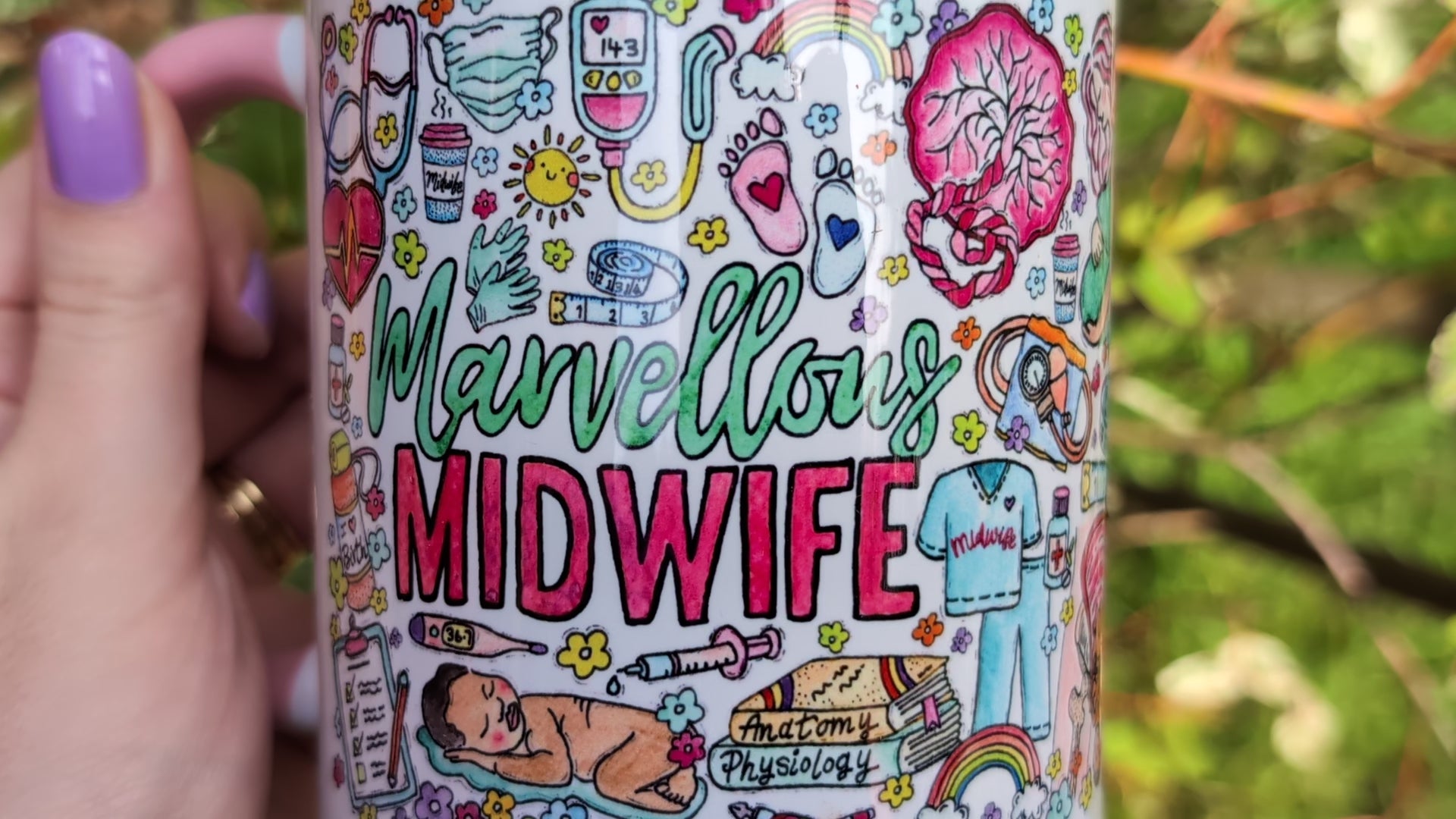 Give your midwife a special thank you gift with my marvellous midwife mug, featuring my watercolour and ink midwifery drawings.